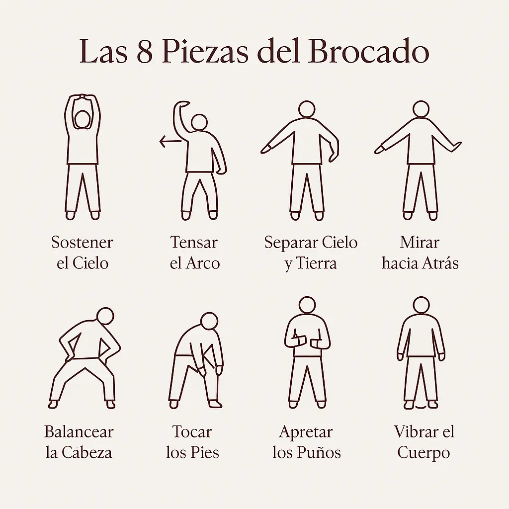 Ese algoritmo está codificado en ocho movimientos precisos, llamados Ba Duan Jin —El Brocado de las Ocho Piezas.